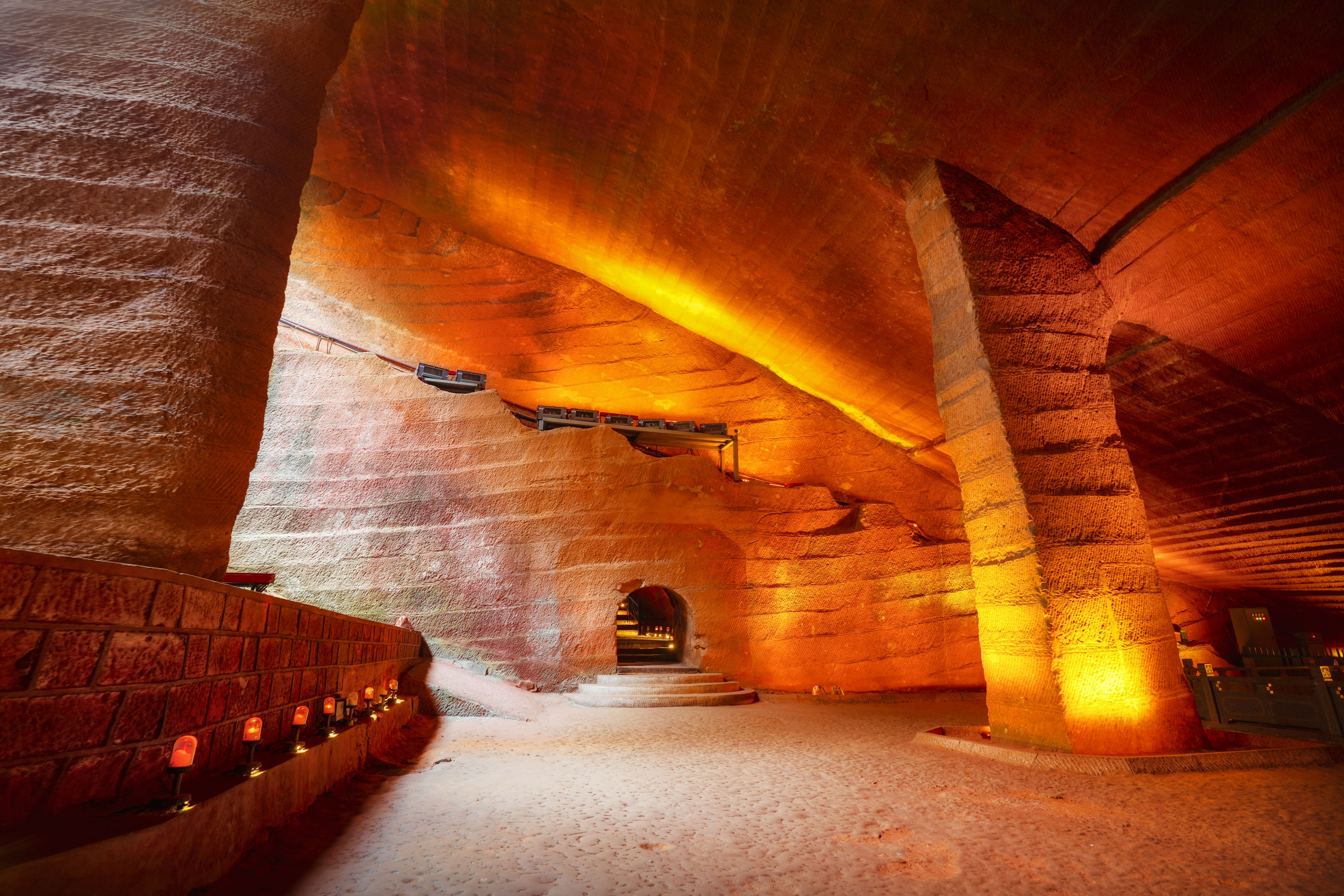 龙游石窟龙游石窟,是世界上最大的古代人造地底建筑,规模浩大,称为千古之谜。走进这个沉睡千年的地下洞窟,洞顶雕刻着动物图像,高大的石柱,幽深的洞穴,极有规律的雕刻纹路,这是一场视觉上的艺术盛宴。
