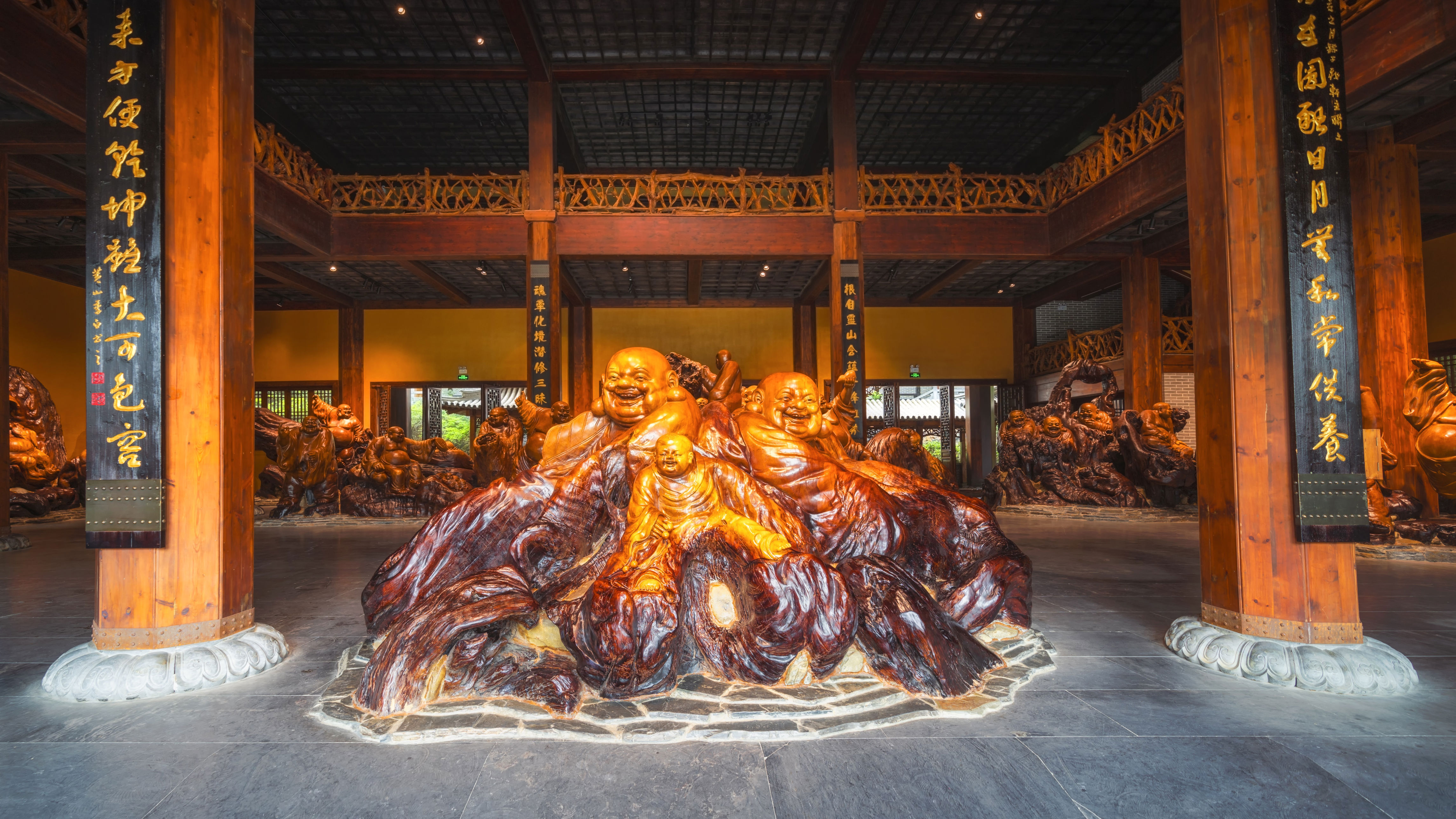 根宫佛国,是世界唯一的根文化主题旅游区,景区内陈列着大型根艺作品几千余件,包括佛教文化系列巨型根雕,感受根雕艺术与佛教文化的完美融合,领略美轮美奂的雕刻艺术,震撼人心!